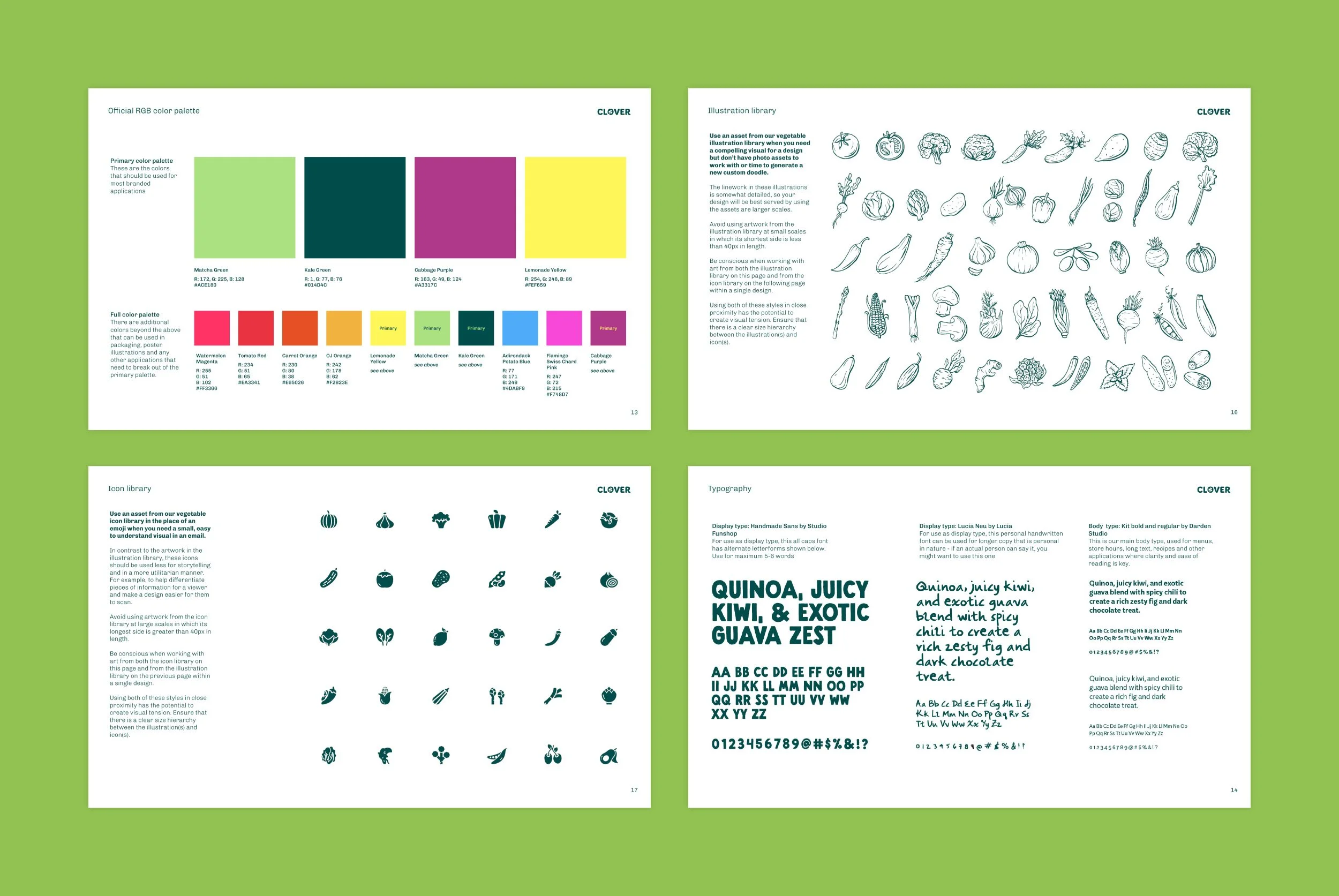 Formerly known as Clover Food Labs, Clover is a vegetarian fast casual restaurant chain. With modest beginnings as a food truck parked out of MIT back in 2008, Clover has grown to consist of over a dozen locations in the Boston metro area, along with a thriving catering business. They needed an updated logo and an expansive visual identity system that could grow with them. I contributed early logo concepts, helped refine the client's selected direction, and then formalized the new system with comprehensive brand guidelines.